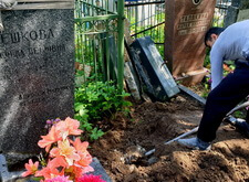 Затем мы вновь вернулись на кладбище: нам предстояло демонтировать основание надгробья, с чем мы и справились на следующем этапе работы.
