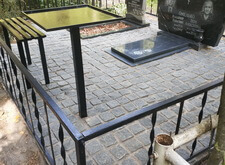 Так выглядит окончательный вариант места захоронения. По факту на этом участке мы переустановили памятники, восстановив одно из надгробий, покрасили оградку, замостили внутреннюю территорию брусчаткой и поставили лавочку со столиком. После окончания работ надписи на памятниках были дополнительно обработаны акриловой краской, это защитит их от пропадания в дождь и от пятен пыльцы растений и грязи.