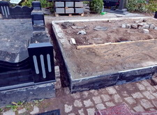 После того, как работа была проведена, клиент посчитал, что в задней части места захоронения требуется дополнительное укрепление. Мы вкрутили пять дополнительных свай, сварили новую сетку и залили ещё одну площадку, которая будет являться основанием для памятников.